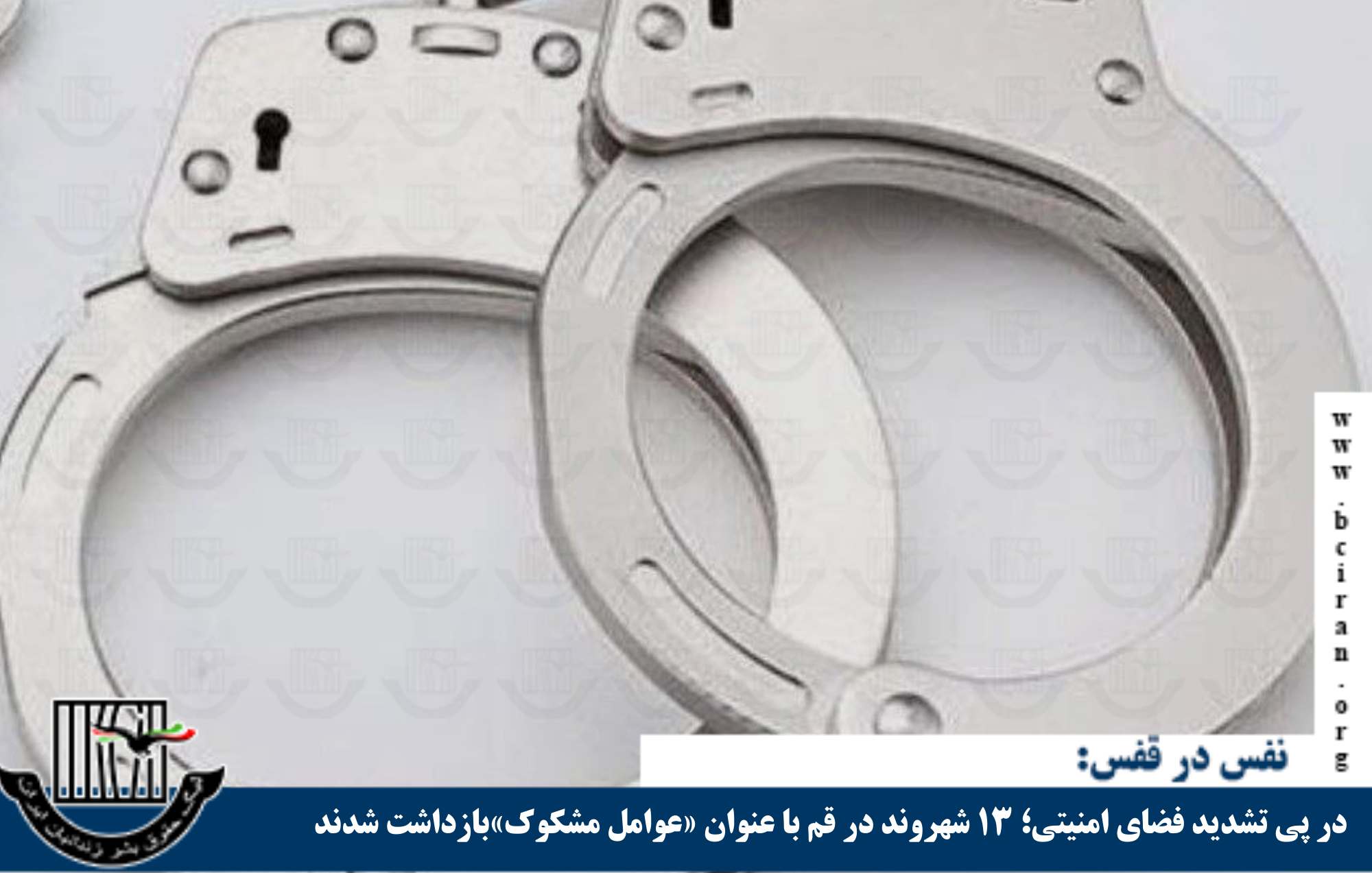 نفس در قفس، شنبه ۲۳ اسفند ۱۴۰۴؛ در پی تشدید سرکوب و افزایش برخوردهای امنیتی در روزهای اخیر، سیزده شهروند در استان قم با عنوان «عوامل مشکوک» بازداشت شدهاند. به گزارش «نفس در قفس»، ارگان خبری لیگ حقوق بشر زندانیان ایران، به نقل از خبرگزاری رکنا و بر اساس اطلاعیه منتشرشده از سوی سپاه قم، سیزده […]