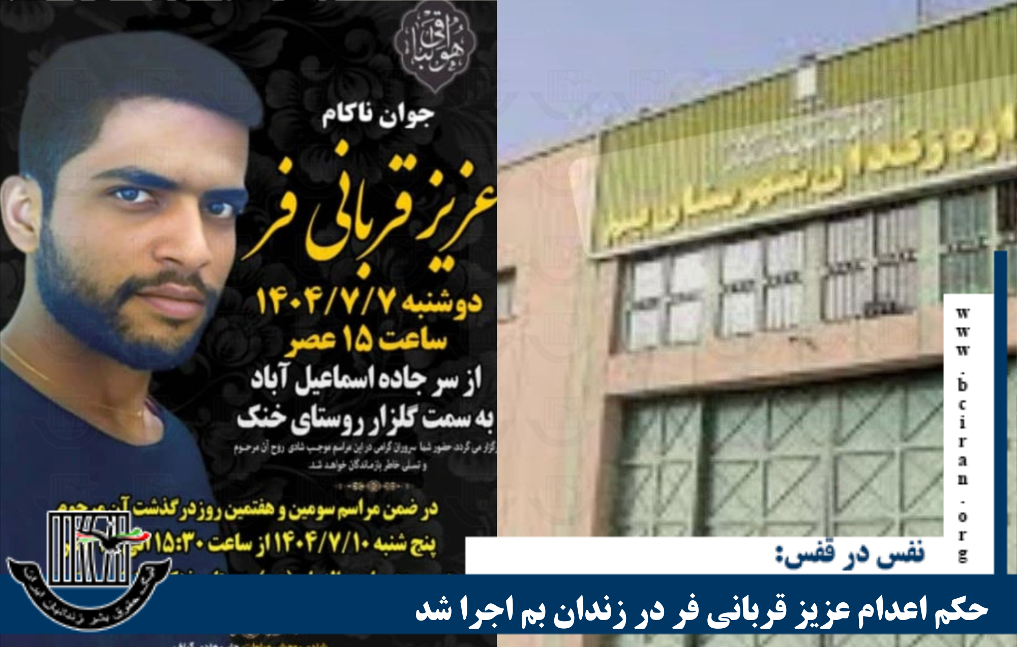 نفس در قفس، یکشنبه ۶مهر ۱۴۰۴؛ حکم اعدام دستکم یک زندانی که به اتهام جرایم مرتبط با «مواد مخدر» بازداشت و به اعدام محکوم شده بود، در زندان بم به اجرا درآمد. به گزارش «نفس در قفس»، ارگان خبری لیگ حقوق بشر زندانیان ایران، بامداد امروز یکشنبه ۶ مهر ۱۴۰۴ یک زندانی در زندان بم […]
