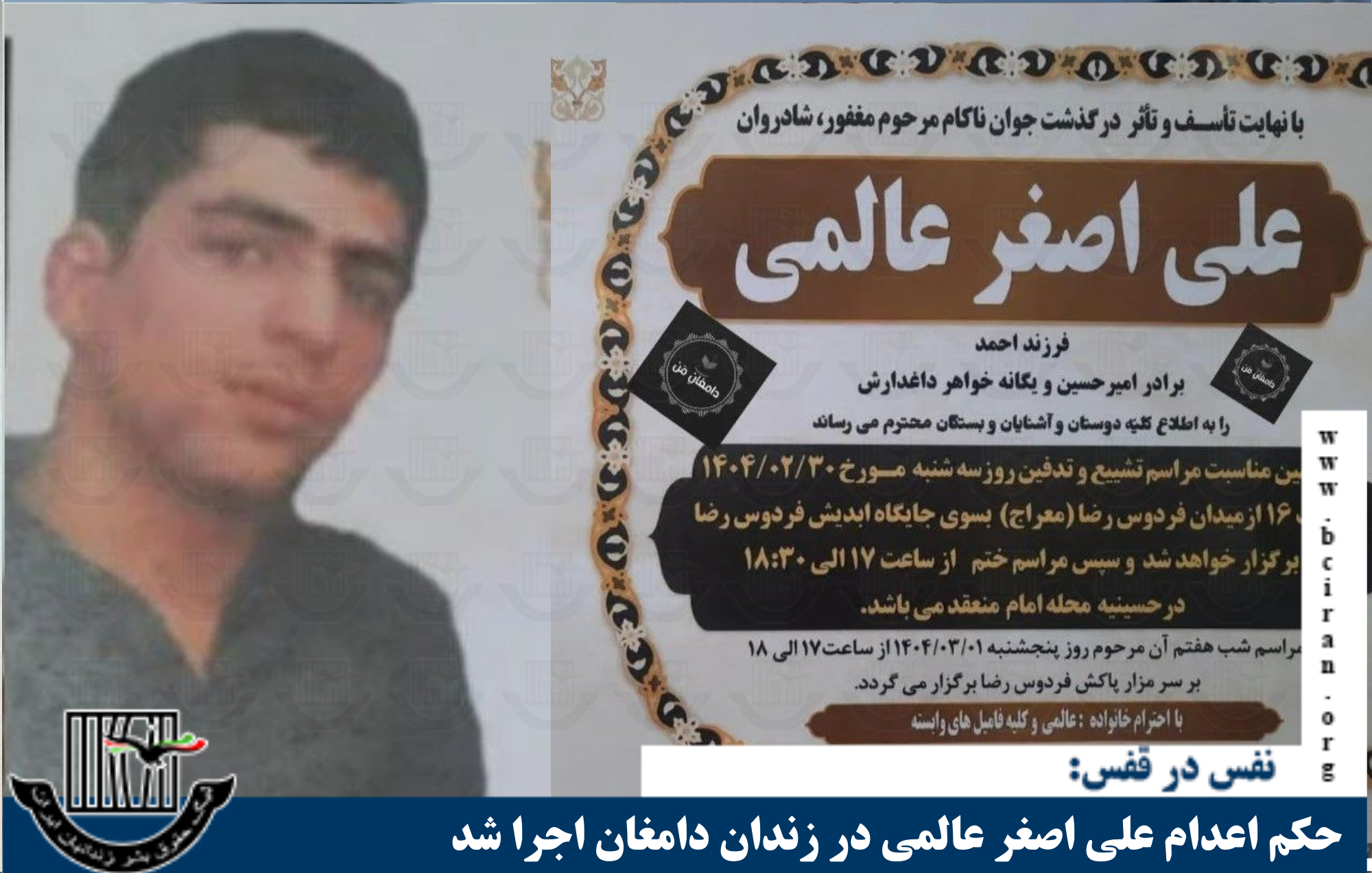 نفس در قفس، یکشنبه ۱۴ اردیبهشت ۱۴۰۴؛با تأیید حکم اعدام یک زندانی ۱۹ ساله در دیوان عالی کشور، اجرای این حکم در ملأ عام در بوکان در دستور کار قرار گرفته است