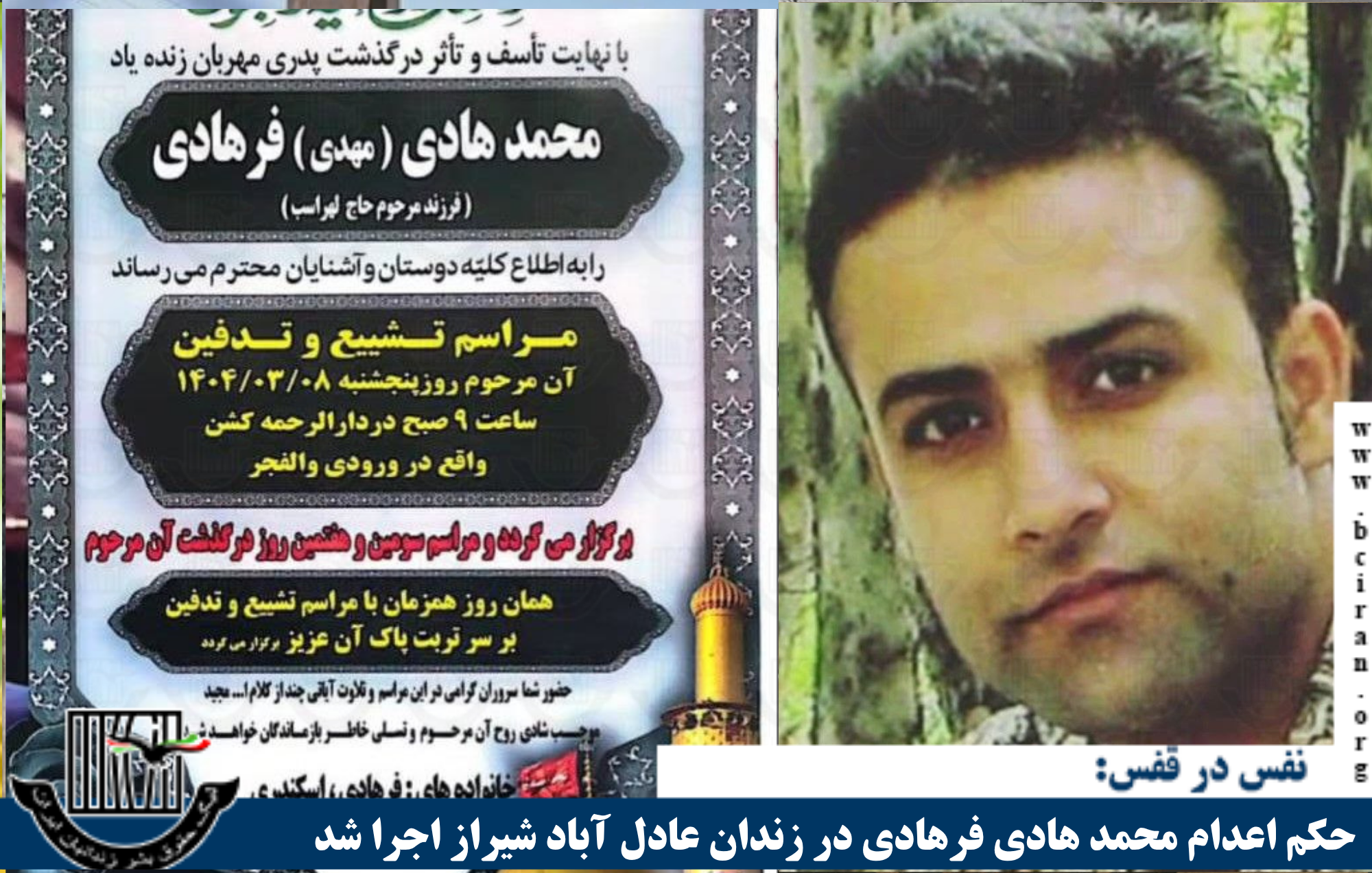 نفس در قفس – سه شنبه ۲۰ خرداد ۱۴۰۴؛ سحرگاه امروز سه شنبه ۲۰ خرداد ۱۴۰۴، حکم اعدام دستکم یک زندانی که پیشتر به اتهام «قتل» بازداشت و به اعدام محکوم شده بود. در زندان مرکزی شیراز به اجرا درآمد. به گزارش «نفس در قفس»، ارگان خبری لیگ حقوق بشر زندانیان ایران، بامداد امروز، سه […]