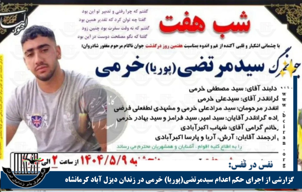 نفس در قفس، پنجشنبه ۹ مرداد ۱۴۰۴؛ حکم اعدام دست کم یک زندانی که به اتهام «قتل» بازداشت و به اعدام محکوم شده بود،در زندان دیزل آباد کرمانشاه به اجرا درآمد. به گزارش «نفس در قفس»، ارگان خبری لیگ حقوق بشر زندانیان ایران، سحرگاه روز سه شنبه ۳۱ تیر ۱۴۰۴، یک زندانی در زندان مرکزی […]