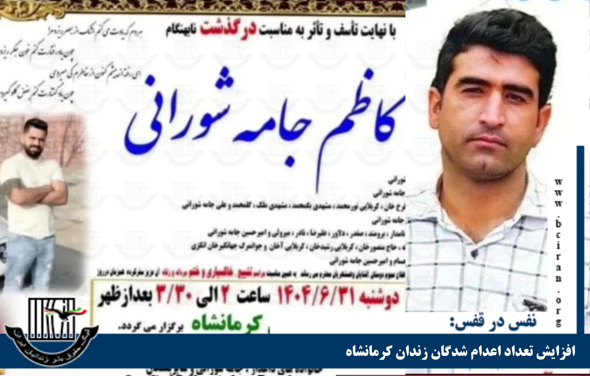 نفس در قفس، یکشنبه ۳۰ شهریور ۱۴۰۴؛ حکم اعدام دستکم سه زندانی که به اتهام «قتل» بازداشت و به اعدام محکوم شده بودند، در زندان کرمانشاه به اجرا درآمد. به گزارش «نفس در قفس»، ارگان خبری لیگ حقوق بشر زندانیان ایران، بامداد روز یکشنبه ۳۰ شهریور ۱۴۰۴ سه زندانی در زندان کرمانشاه به دار آویخته […]