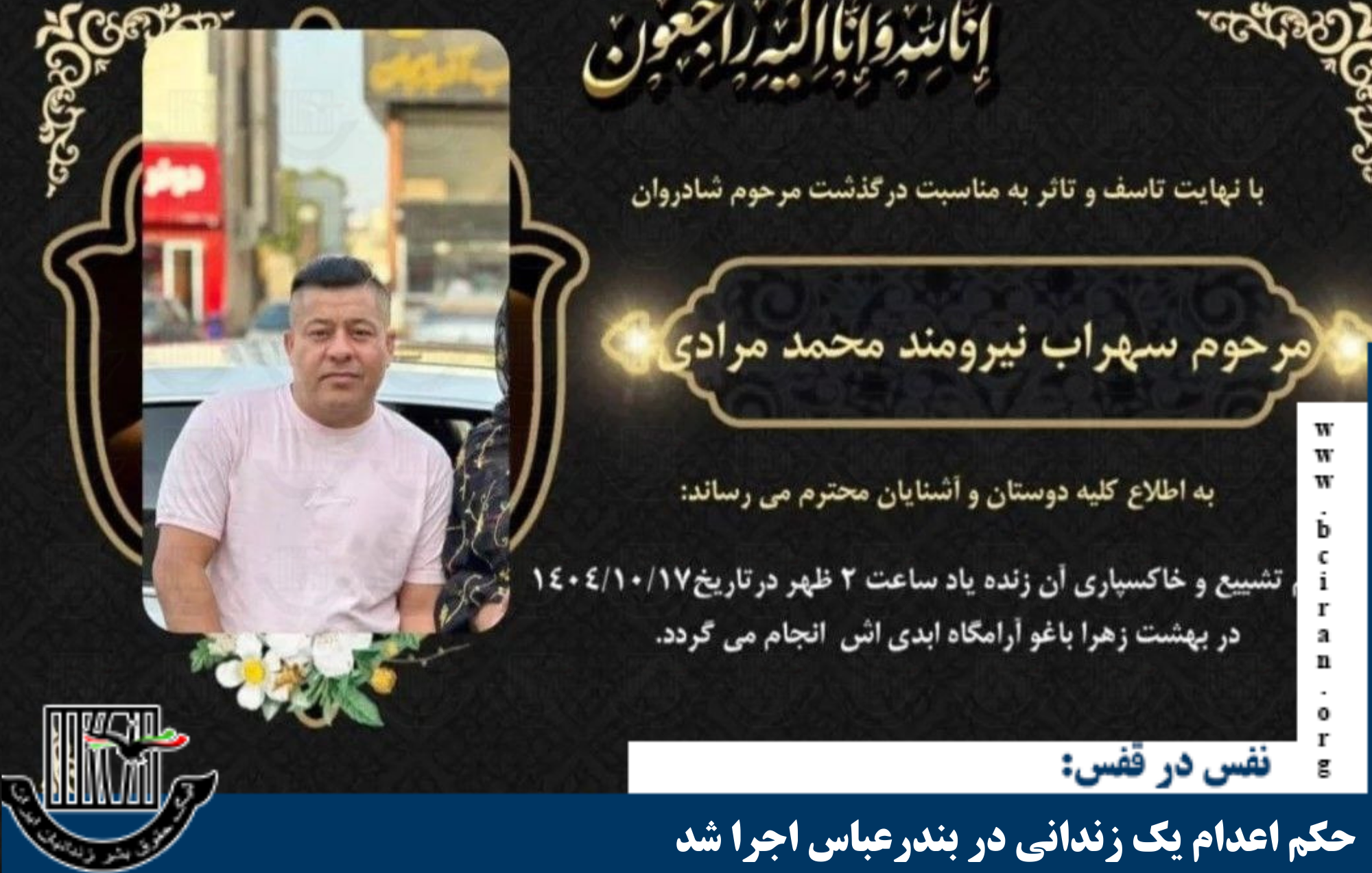 نفس در قفس، چهارشنبه ۱۷ دی ۱۴۰۴؛ حکم اعدام دست کم یک زندانی که پیش تر بازداشت و به اعدام محکوم شده بود. در زندان بندرعباس به اجرا درآمد. به گزارش «نفس در قفس»، ارگان خبری لیگ حقوق بشر زندانیان ایران، بامداد امروز چهارشنبه ۱۷ دی ۱۴۰۴ یک زندانی در زندان بندر عباس به دار […]