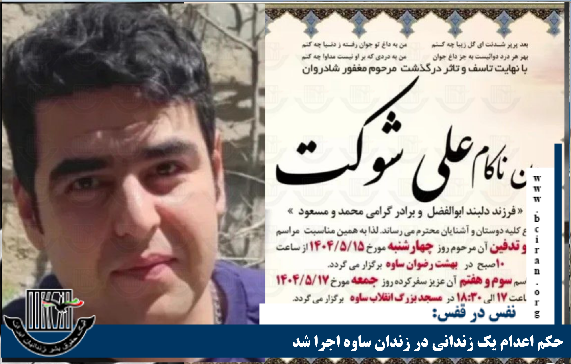 نفس در قفس، یکشنبه ۹ آذر ۱۴۰۴؛ حکم اعدام دستکم هفت زندانی که پیش تر به اتهام جرایم مرتبط با «مواد مخدر» و «قتل» بازداشت و به اعدام محکوم شده بودند. در زندان های؛ دزفول، ساوه، اراک، کرمان، شیراز و الیگودرز به اجرا درآمد. به گزارش «نفس در قفس»، ارگان خبری لیگ حقوق بشر زندانیان […]