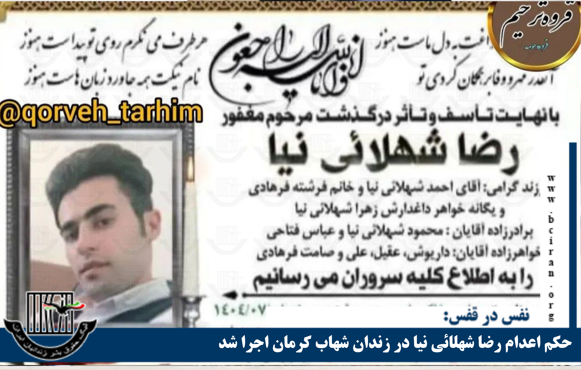 نفس در قفس، سه شنبه ۲۶ فروردین ۱۴۰۴ – سحرگاه روز سه شنبه ۲۶ فروردین ۱۴۰۴، حکم اعدام دستکم یک زندانی که به اتهام جرایم مرتبط با «مواد مخدر» بازداشت و به اعدام محکوم شده بود، در زندان کرمان به اجرا درآمد. به گزارش «نفس در قفس»، ارگان خبری لیگ حقوق بشر زندانیان ایران، بامداد […]