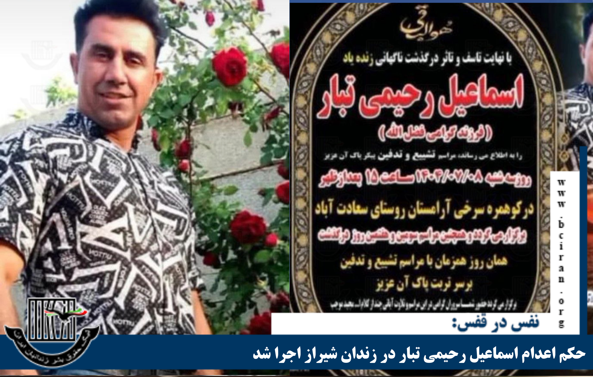 نفس در قفس، یکشنبه ۴ آبان ۱۴۰۴؛ حکم اعدام دستکم دو زندانی که به اتهام «قتل» بازداشت و به اعدام محکوم شده بودند. در زندان شیراز به اجرا درآمد. به گزارش «نفس در قفس»، ارگان خبری لیگ حقوق بشر زندانیان ایران، بامداد امروز یکشنبه ۴ آبان ۱۴۰۴ دو زندانی در زندان شیراز به دار آویخته […]