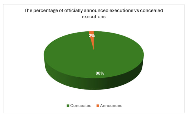 This stark statistical gap demonstrates that concealment is not an exception but rather an organised and systematic practice in the implementation of the death penalty. The failure to officially announce the overwhelming majority of executions reflects a deliberate effort by the authorities to manage the social and international consequences of prisoner killings, to reduce public sensitivity, and to prevent the emergence of protest movements.